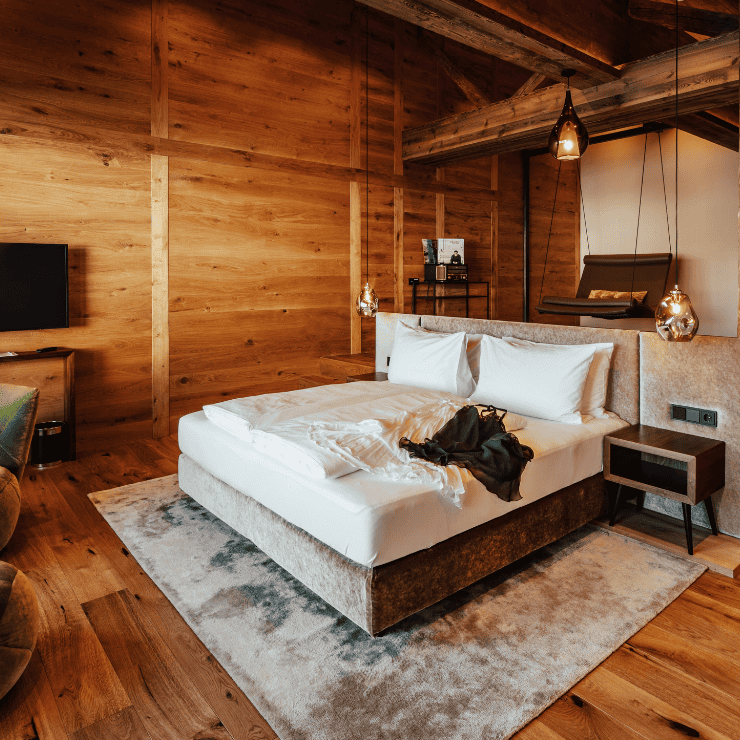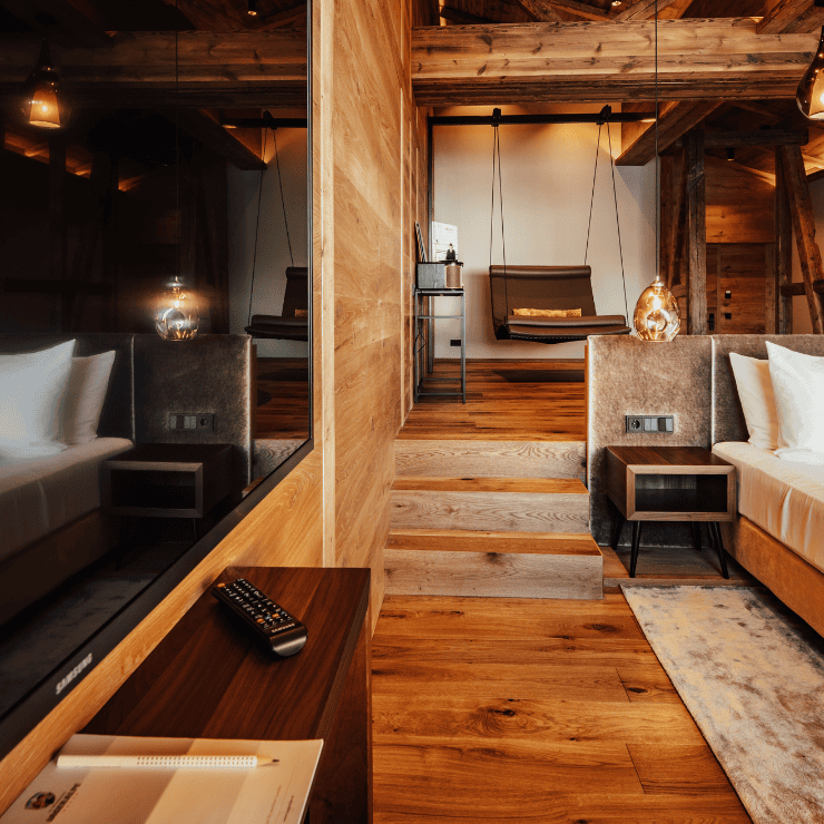 Für das Hotel Jägeralpe entstand ein Innenausbau, der alpinen Charakter mit zeitgemässer Ruhe verbindet. Gefertigt wurden hochwertige Holzlösungen für Zimmer und Suiten, die Wärme, Struktur und Wohnlichkeit in den Raum bringen. Klare Linien, natürliche Materialien und sorgfältig ausgearbeitete Details schaffen eine Atmosphäre, die zum Haus und zur Lage am Arlberg passt.